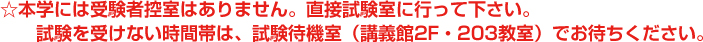 受験者以外は試験会場内へ入場できません。待機所の用意はありません。