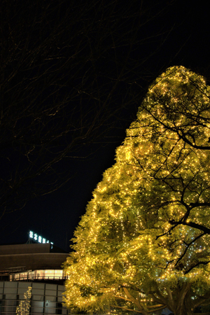 大学病院前ヒマラヤ杉で11月28日(日)より、恒例のイルミネーションが始まった。