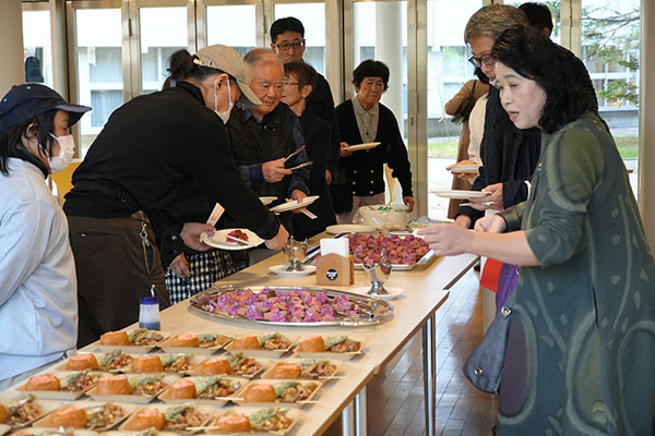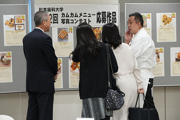 「よく噛んでおいしく健康に」をテーマにした料理作品の公募イベント「第12回カムカム(噛む噛む)メニュー写真コンテスト」の表彰式が11月8日(土)、本学で行われた。本学の取り組みに関心のある人や応募者など多くの人が参加し、出品された料理作品の資料展や、「カムカムメニュー」の普及を図る総合歯科医学研究所の増田裕次特任教授の講演、カムカムメニューの試食会などを楽しみ、よく噛んで食事をすることの意義を再認識していた。