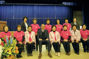 食生活改善推進員と記念撮影する増田教授(前列左から4番目)